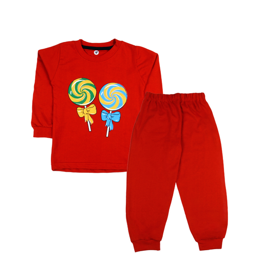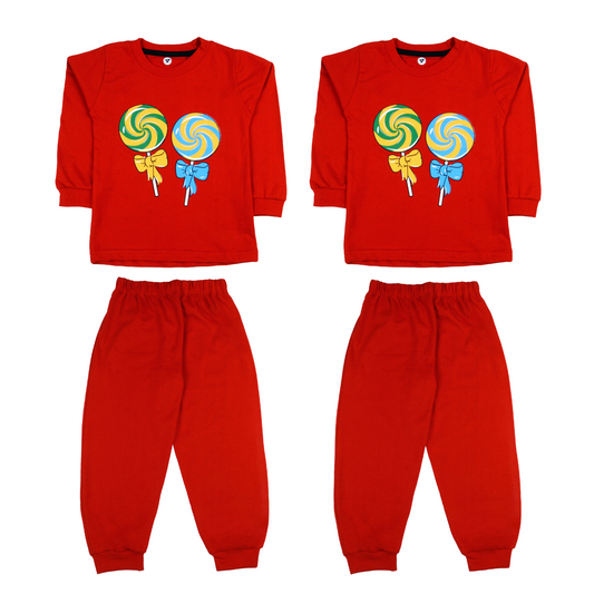 Sakuya Kids Cotton T -Shirt & Pant Set for Boys & Girls (Pack of 2)- Fun Cartoon Print Breathable Cotton Full Sleeve Unisex Kids Clothing Set - Nightwear coord Set-RED