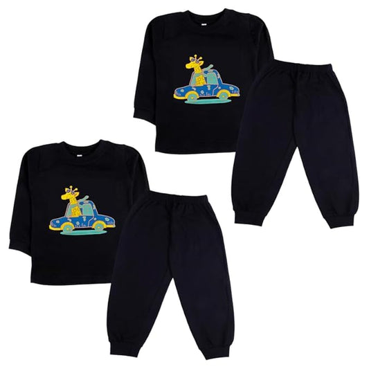 Sakuya Kids Cotton T -Shirt & Pant Set for Boys & Girls (Pack of 2)- Fun Cartoon Print Breathable Cotton Full Sleeve Unisex Kids Clothing Set - Nightwear coord Set-Black