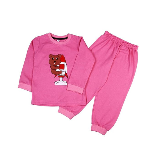 Sakuya Kids Clothing Set Night Suits Round Neck Full Sleeve T-Shirt & Pant Soft, Breathable 100% Cotton Sleepwear for Baby Boys & Girls - Pajamas Set | Unisex Kids Dress Sleepsuits Pack of 1, Pink