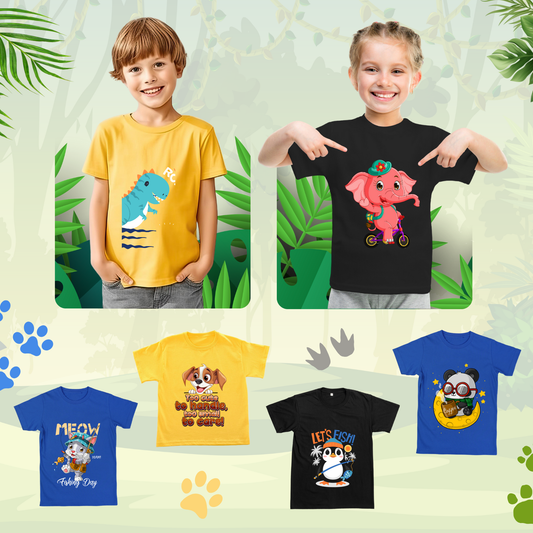 Sakuya Cute Elephant Print Breathable Cotton Half Sleeve Tshirt & Pant Clothing Set for Nightwear coord Set for Unisex Kids Boys Girls-Black