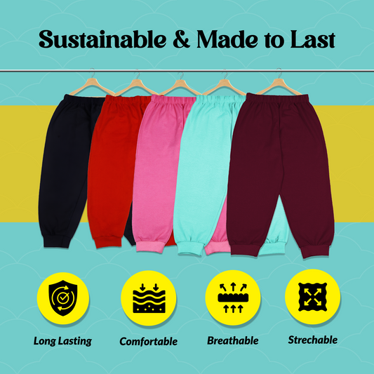 Cotton Kids Jogger Pants Combo Pack of 5 | Soft & Breathable Fabric | Elastic Waistband for a Snug Fit | Stretchable Cuffs | Casual Bottoms for Boys & Girls