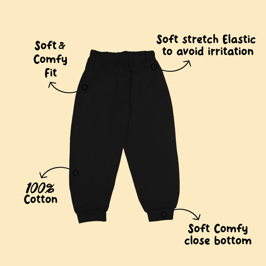 Sakuya Breathable Cotton Pant for Unisex Kids (0-5 Years) - Perfect for Nightwear, Sleepwear, and Casual Travel - Black