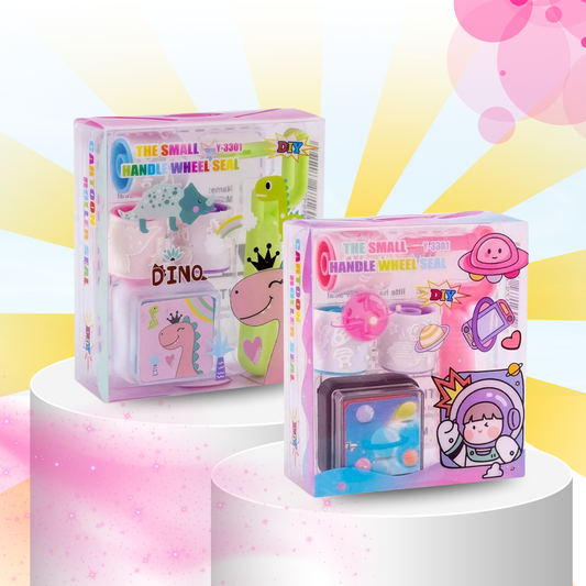 Sakuya Roller Seal Stamp with Inkpad for Kids | Handle Wheel Roller Stamp Set | Cute Stationery Items for Girls & Boys | Return Gift for Birthday Parties | Art Kit for Children - Animal