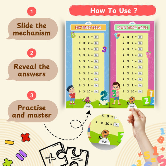Sakuya Slide and Learn Multiplication Book for Kids | Interactive Pull Tab Activity | Colorful Times Tables 1 to 12 | Math Practice Book | Fun Learning for Early Education