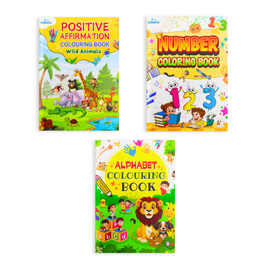Sakuya Kids Colouring Book Set | Alphabet, Number & Animal Affirmation Colouring Books | Art and Activity Books for 3 to 12-Year-Olds | Kids Drawing Books & Colouring Kit