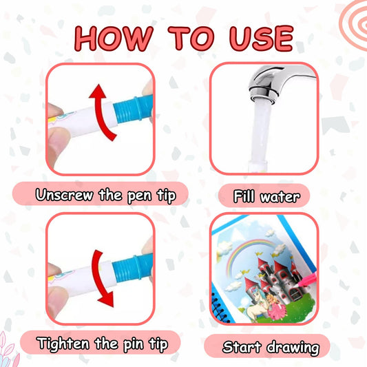 Sakuya Magic Water Coloring Book |Mess-Free Colouring Book|Reusable Notepad with Magical Pen| Educational Doodle Book for Kids, Return Gifts for Birthdays, Kids, Boys, Girls- (Pack of 100)