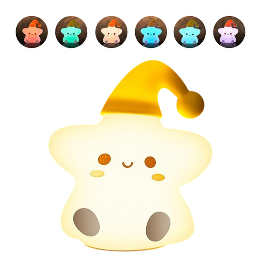Sakuya Cute Star Night Lamp for Kids Bedroom | Touch & Tap Control Color Changing Silicone LED Lamp with Rechargeable Battery | Soft Warm Light Bedside Lamp for Baby Nursery, Sleep Aid & Room Decor