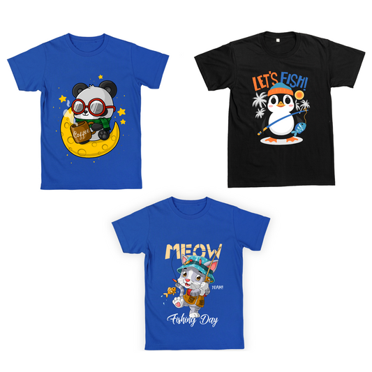 Sakuya Kids T-Shirt Regular Fit Unisex Cotton Dress with Attractive Prints (Pack of 3)