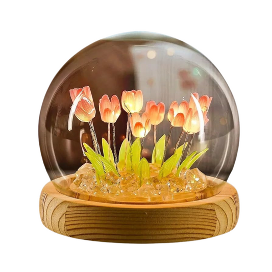 Tulip Lamp - Cute Table Lamp with Tulip Flowers, Aesthetic Flower Lamp for Bedroom, Decorative LED Night Lamp for Girls, Unique Glass Tulip Light for Gifts, Lamps for Room and Desk Décor