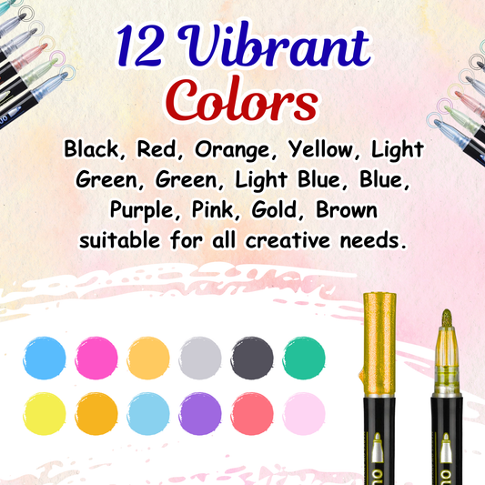 Sakuya Double Line Metallic Outline Marker Pens for Journaling, Scrapbooking, Doodles, Hand Lettering, DIY Crafts with Vibrant Colored Borders and Smooth Glitter Finish | School and Office Supplies