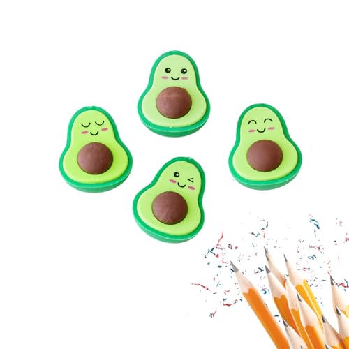 SAKUYA Avocado Fruit-Shaped Kids Pencil Erasers (Set of 4) - Fun Shapes, Stylish Design | Perfect for School, Art, and Gifts | Cute Green Avocado Erasers for Classroom Rewards, Birthdays, Party Favors