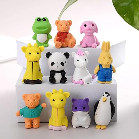 Sakuya Collectible 3D Animal Erasersr 4 Nos - Great for Classroom Rewards, Party Favors, Games, Prizes & Collection -Suitable for Prizes, Party Favors, School Supplies, Arts & Crafts-Set of 1 Box