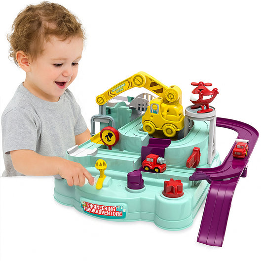 Sakuya Car Race Track Toy for Kids with Helicopter, Ramp, Slide, Manual Controls and Crane | Fun Learning Engineering Truck Adventure Set | Gift for Boys and Girls Ages 3+
