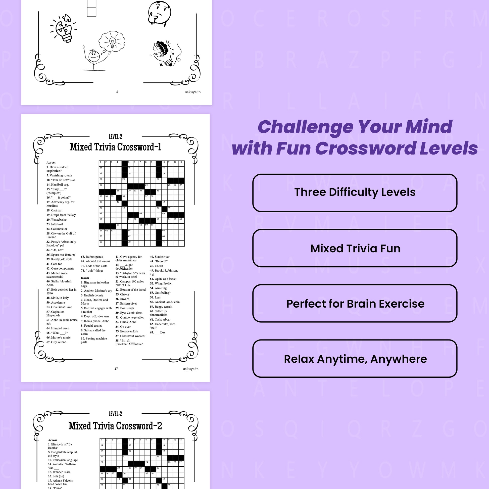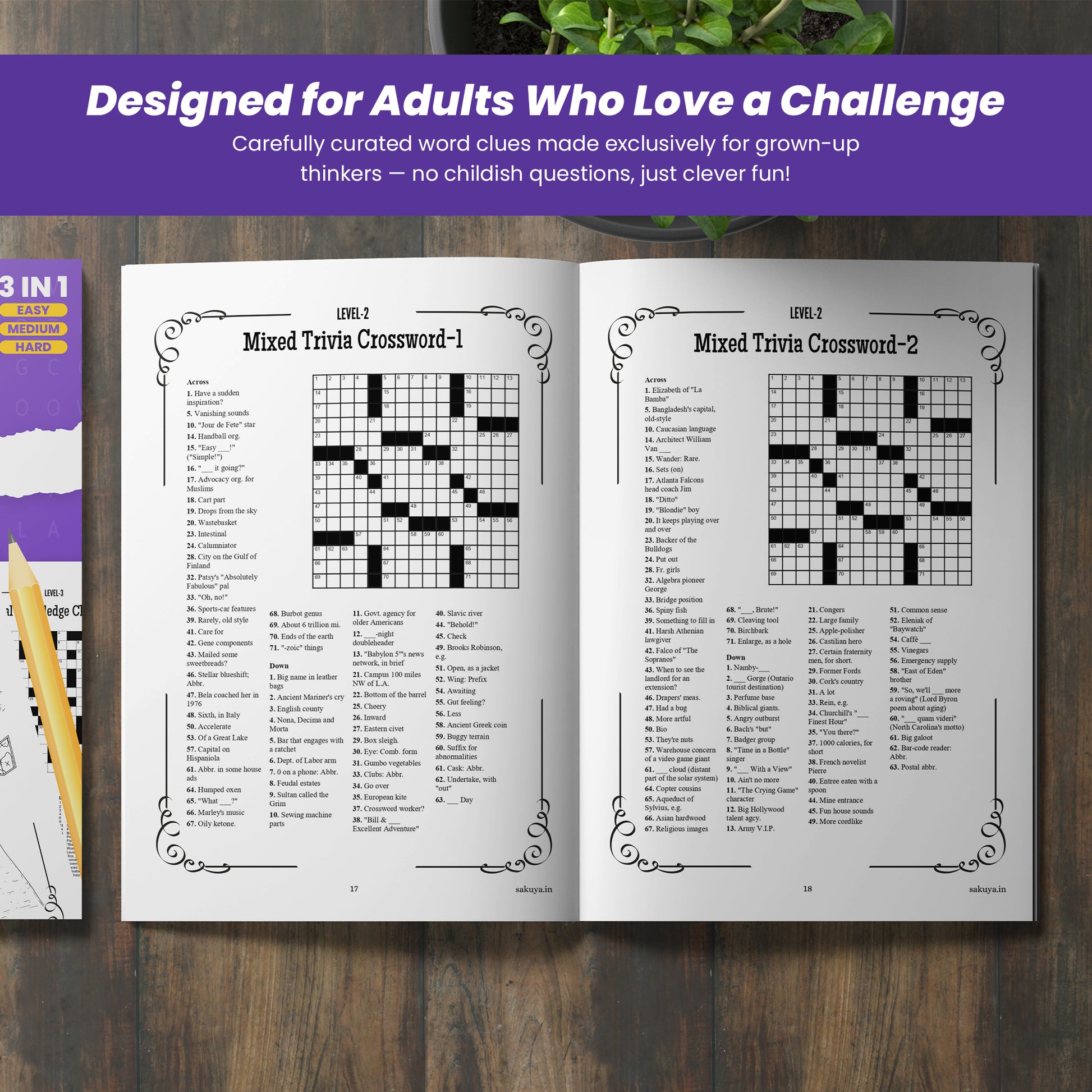 Keep your mind sharp and your curiosity alive with this crossword game book for adults. Designed for lovers of brain games, puzzle books for adults, and mind games for adults, this book offers a variety of crossword puzzle books adult challenges that stimulate memory, focus, and problem-solving skills.