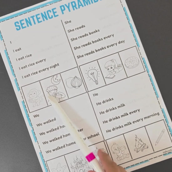 Sakuya 209 Sentence Pyramid Book | Homeschool Printable | Preschool Download | Handwriting Practice | Kindergarten Phonics and Comprehension