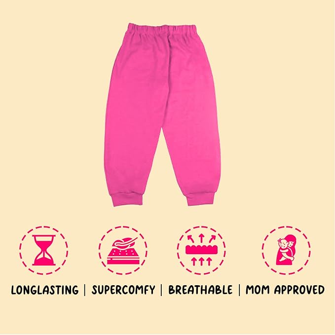 Sakuya Kids Track Pants for Boys & Girls - 100% Cotton Regular Fit Daily Use Lower Pants | Comfortable & Easy to Wear Trendy Nightwear | Stretchable Pants - Pack of 1, Sleepwear Pink