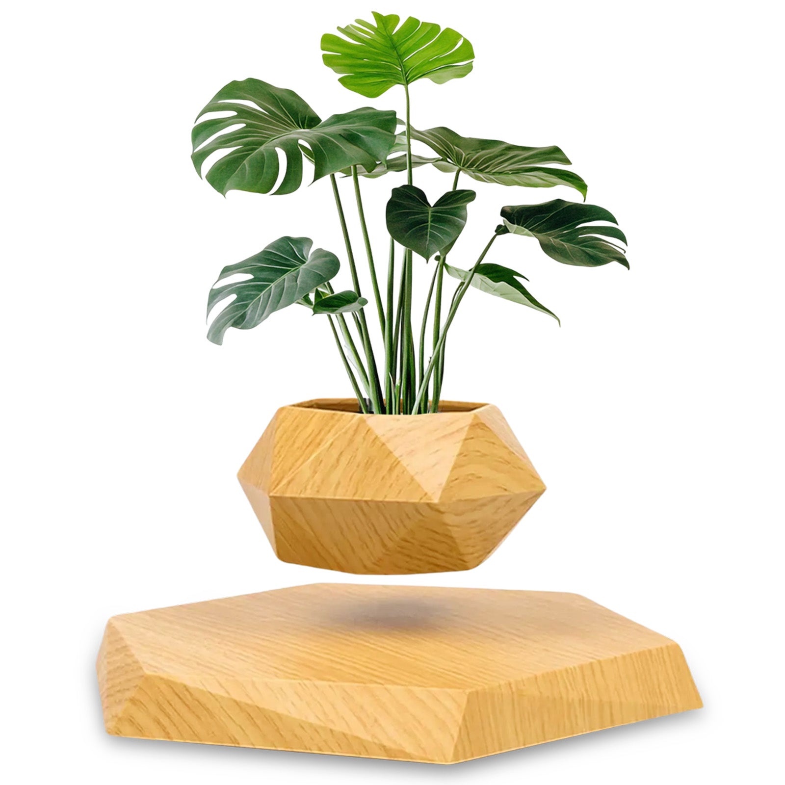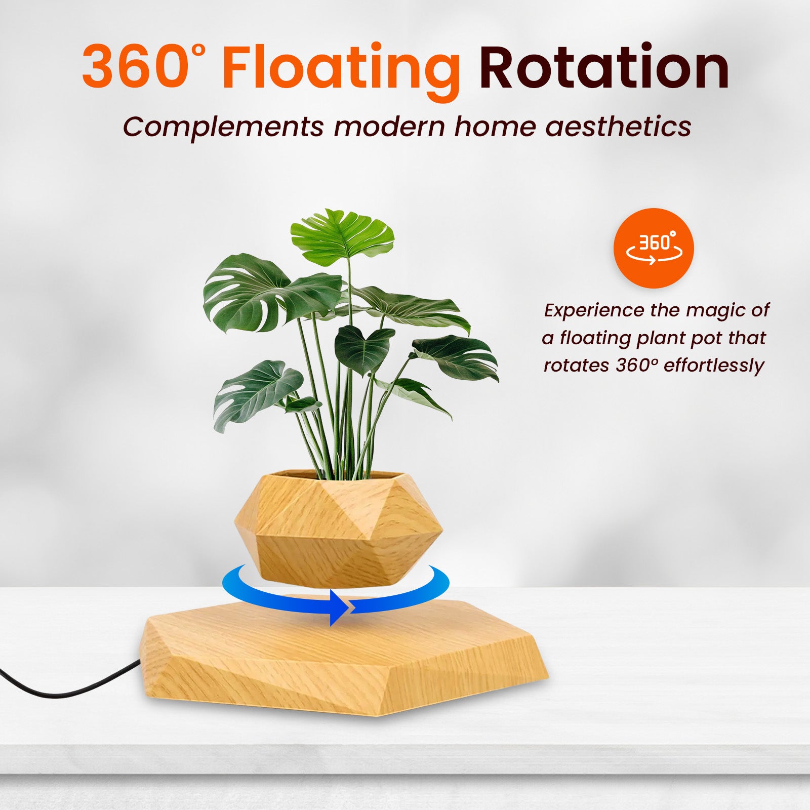The base must be plugged into a power source to maintain levitation, ensuring a steady and reliable floating display. With its wooden-finish geometric design, this planter adds elegance to any home, office, or workspace. It’s perfect for small plants like succulents and air plants, allowing you to showcase greenery in an innovative way.
