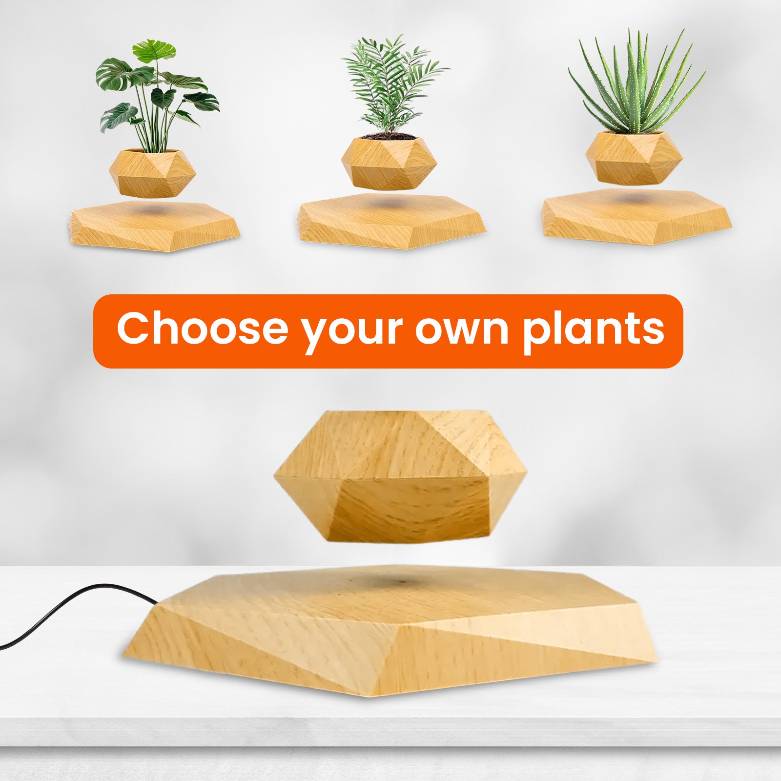 Sakuya Magnetic Levitating Plant Pot with Power Cord | Floating & Rotating Planter with Wooden Finish | Home & Office Decor | Unique Desk Ornament & Gift for Plant Lovers