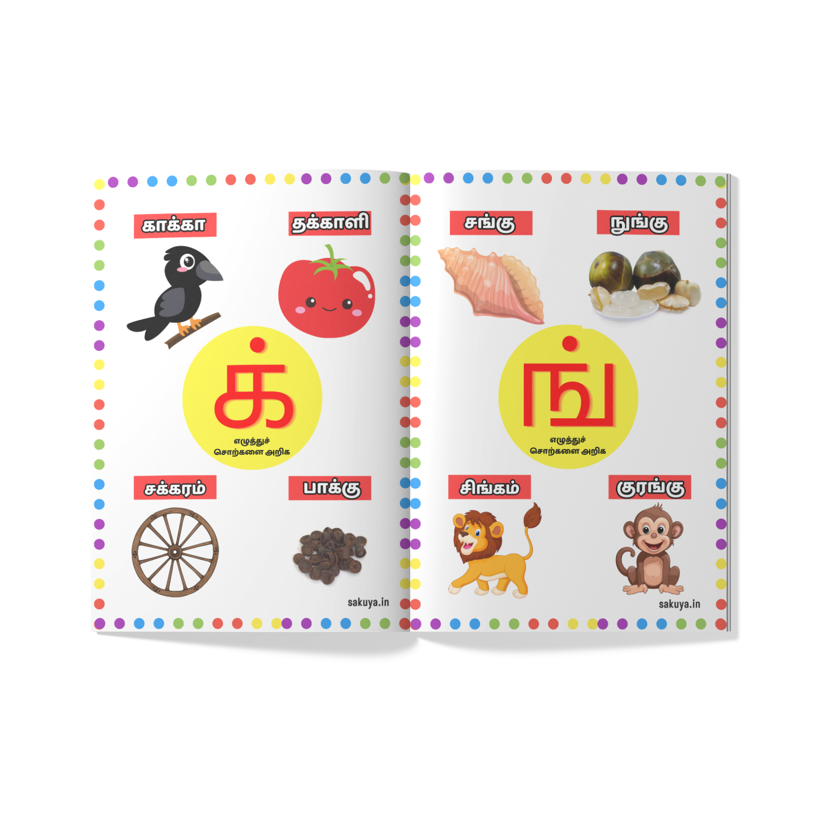 Sakuya Mei Eluthugal Tamil Consonants Learning Book for Kids | Tamil Alphabet learning & Writing Practice with Pictures and Activities | Early Learning